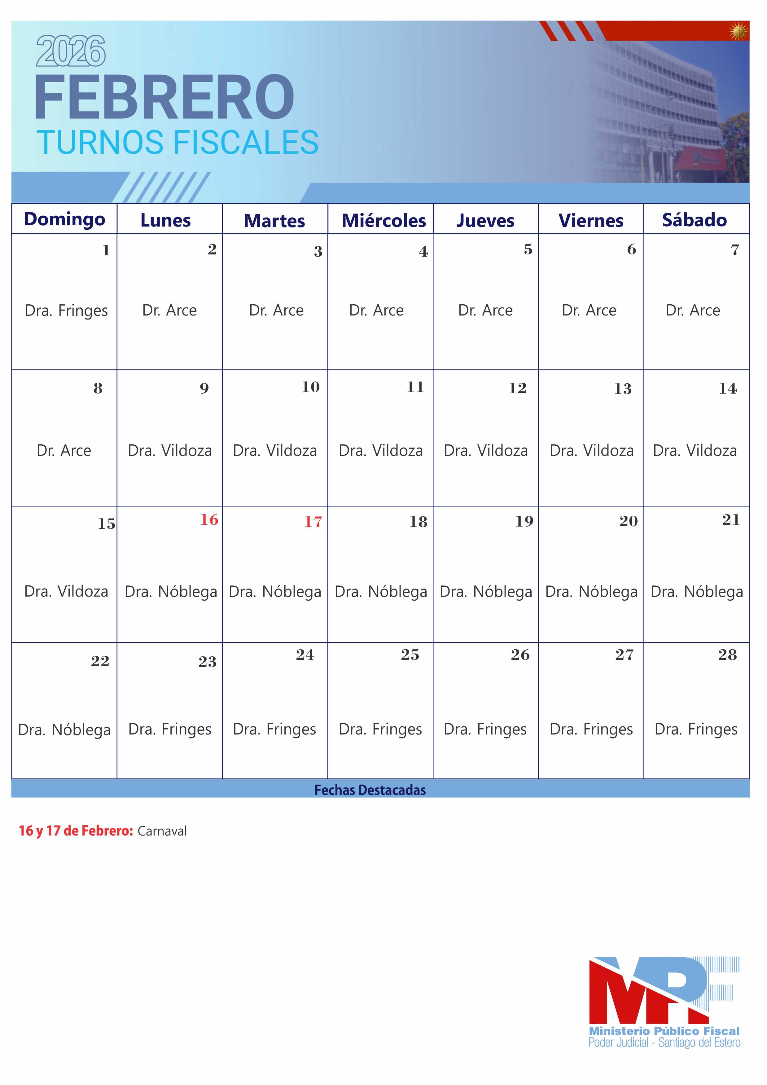 Calendario de turnos fiscales